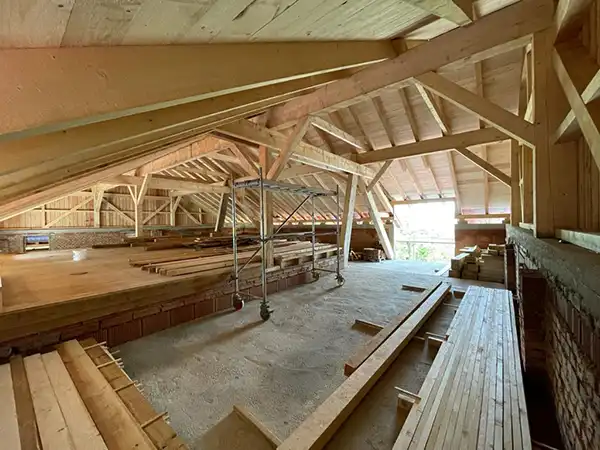 Ob Satteldachstuhl, Pultdachstuhl oder Walmdachstuhl – wir übernehmen die Planung und den Bau Ihres Dachstuhls in der erforderlichen Präzision.