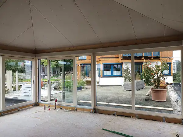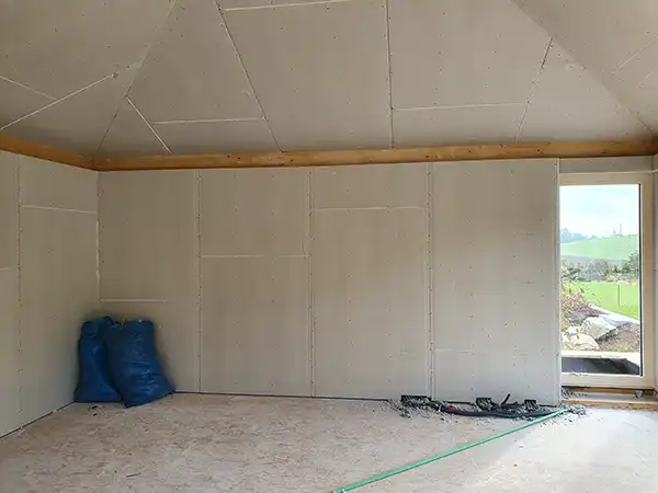 Beim Innenausbau setzen wir auf ökologische Dämmstoffe. Deshalb kommen bei uns in erster Linie Holzweichfaser, Zellulosedämmung und Hanfprodukte zum Einsatz. Die Beplankung erfolgt nach Ihren Wünschen klassisch mit Gipskarton, Lehmbauplatten oder Holz bzw. eine Kombination mit Holz-/Altholzelementen.